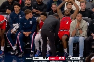 伤不起啊!伦纳德防守时又被撞到&一瘸一拐 已确定退赛!