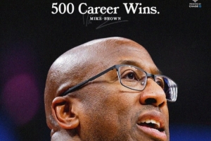 迈克·布朗教练生涯829场比赛,胜场500场,胜率60.3%。