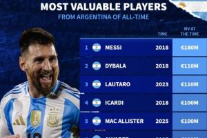 阿根廷历史身价排行榜: